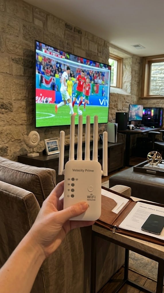 "Finally, a repeater that actually delivers on its speed promise. We stream 4K soccer matches in the basement while the kids are gaming upstairs, and there is zero lag. The security features also give me peace of mind for my home office."